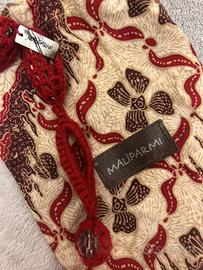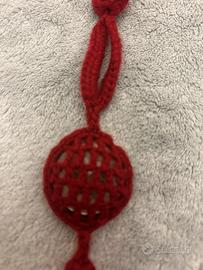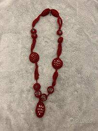 Collana lunga originale, artigianale fatta a mano “Maliparmi”. Lavorazione in lana color bordeaux incastonate tipo cristalli, targhetta con inciso il brand Lunghezza collana cm.44