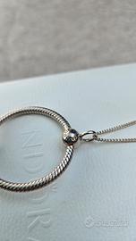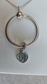 vendo collana originale Pandora per 18° compleanno/anniversario. Incluso pendente 'O' medio (per inserire charms) Incluso charm '18' Venduta con confezione originale Pandora (come mostrato in foto). Argento Sterling 915 Condizione come nuova, mai indossata. Prezzo leggermente trattabile.