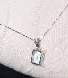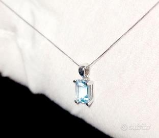 Collana con pendente oro 18k gr.3.5 circa ed Acquamarina naturale intrattata ct.4 circa.