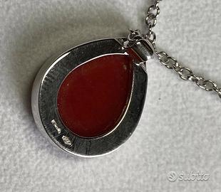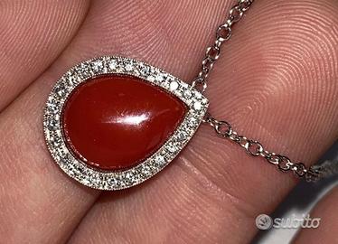 COLLANA ORO 18kt. CON DIAMANTI E CORALLO NATURALE