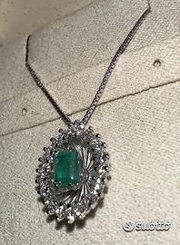 COLLANA ORO 18kt. CON DIAMANTI E SMERALDO NATURALE
