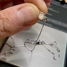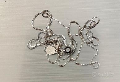 Catena in oro bianco 750% con diamante nero da 0,70 carati. Lunghezza catena 55 cm, peso 4 grammi. Marca famosa Davite e Delucchi. Scatola e garanzia. Nuovo.