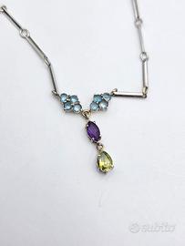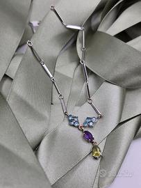 COLLANA ORO ACQUA MARINA, TORMALINA, TOPAZIO