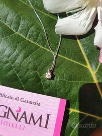 Un vero classico che non esce mai di moda! La collana in oro bianco con diamante 0,12 carati taglio brillante. Nuova. Garanzia e scatola regalo compresa. Valore commerciale circa 450€. Più foto disponibili su richiesta.