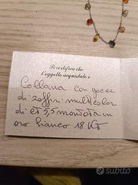 Bellissima collana oro bianco 18kt con zaffiri multicolore dal peso totale di 5,5 ct. Garanzia di autenticità del materiale utilizzato per realizzarlo.