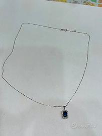 Vendo splendida collana in oro bianco 14 kt, caratterizzata da un zaffiro centrale da 1,50 ct di intenso colore blu, impreziosito da una cornice di diamanti naturali per un totale di 0,48 ct.