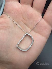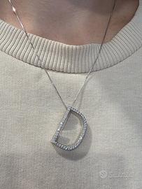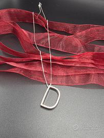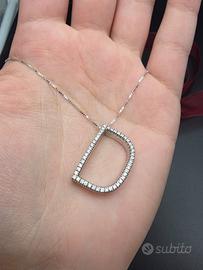 Bellissima collana in oro bianco massiccio 18 carati in maglia veneta sottile con una splendida D grande tempestata di 47 diamanti naturali taglio brillante di 0,47 carati complessivi.