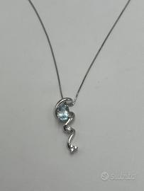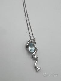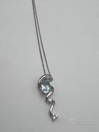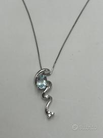 Meravigliosa collana in oro bianco massiccio 18 carati con puntoluce acquamarina naturale taglio ovale di 1 carato e 3 diamanti naturali taglio brillante.