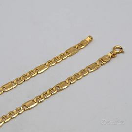 Collana uomo in oro giallo 18 kt grammi 7,1 lunga cm. 50,5. La lavorazione è lucida e classica. Prodotto made in Italy munito di marchio di fabbrica come da legge e completo di confezione e certificato di qualità rilasciato dalla Gioielleria.