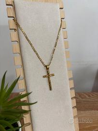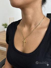 Collana Oro Maglia Figaro con Crocifisso - Nuova