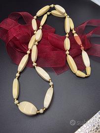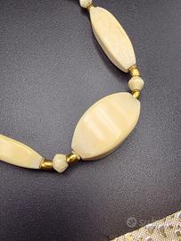 Bellissima collana anni '30 in oro giallo massiccio 18 carati e introvabile ivory