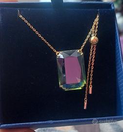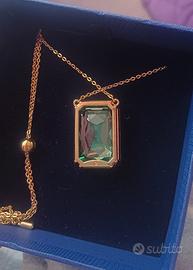 Collana con ciondolo Swarovski, linea Millenia,placcato color oro. Pendente taglio ottagonale, colore verde smeraldo, lunghezza totale della collana è di 75cm, regolabile. Dimensione pendente 2.7 ×1.8cm, prezzo originale 159 €. Non per, non vendita fuori dalla piattaforma.