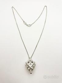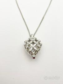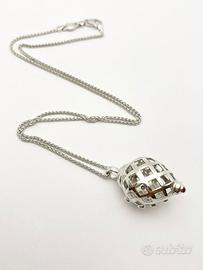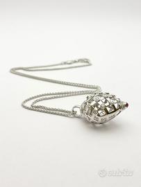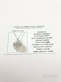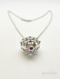 Collana in oro bianco 18 KT ( 750 ‰ ) di grammi 14.07 impreziosita da diamanti naturali forma tonda e taglio a brillante di ct 0.70 totali; purezza VVS colore G e rubino naturale taglio cabochon di ct 0.10.