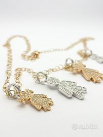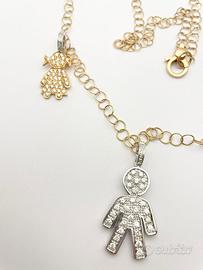 Collana in oro giallo, bianco e rosa 18 kt ( 750 ‰ ) di grammi 45.10 impreziosita da diamanti naturali forma tonda e taglio a brillante di ct 2.20 totali; purezza VVS colore G. A scritta MARIE MAS.