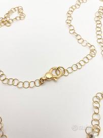 La collana è lunga cm 89. I ciondoli misurano in altezza da mm 43.22 a mm 31.41, in larghezza da mm 25.41 a mm 13.40 e spessi da mm 2.66 a mm 1.60.