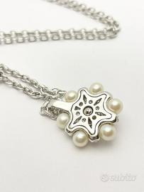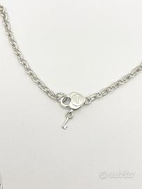 La collana è lunga cm 45 e spessa mm 2.02. Il ciondolo misura in altezza mm 25.64, in larghezza mm 23.05 e spesso mm 8.19.