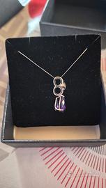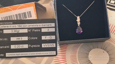 collana oro bianco 18k con diamante naturale e ametista naturale da 3ct. descrizione anche in foto
