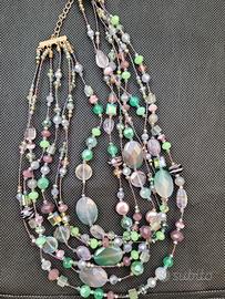 Collana mai indossata. si compone di 7 fili di pietre di varie dimensioni e colori molto delicati (dal verde acqua, lilla, rosa più intenso, bianco) tutte sfaccettate che riflettono delle bellissime sfumature. Può essere indossata nelle più svariate occasioni garantendo sempre molta eleganza.