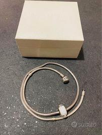 Collana Pandora Moments + charm vetro di murano sfaccettato bianco
