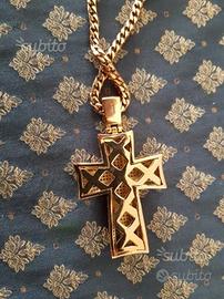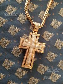 Splendido esemplare unico collana maglia Franco in acciaio con croce a pavé di zirconi cubici russi bianchi di qualità top incastonati perfettamente. Lamina oro rosa 18k a 22 micron, nuova progettata per un video di noto rapper hip hop. Ottimo per biker, dj, mc di impatto incredibile. Prezzo Non trattabile.Primo contatto email.