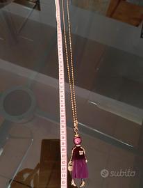 Perfetto come ciondolo su una catenina (già inclusa, a palline dorate) oppure come portachiavi o charm da appendere alla borsa o allo zaino.