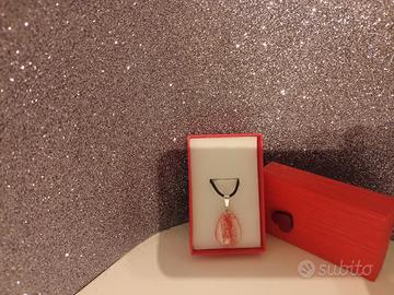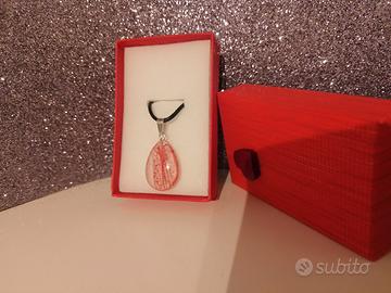 Collana con pendente a forma di goccia. Il pendente presenta inclusioni che creano un effetto unico. - Pendente a forma di goccia. - Cordino nero incluso.