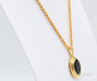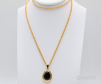Non Spedisco Con Poste Italiane. Raffinata ed essenziale, questa parure degli anni ’80 combina il calore dell’oro giallo alla profondità cromatica del granato naturale. Un pezzo d’epoca dal design intramontabile. Composizione: Oro Giallo 18 carati (750). Gemma: Granato naturale di grandi dimensioni (2 x 1,5 cm). Catena: Modello a corda, lunghezza 60,5 cm per una vestibilità elegante. Peso totale: 6,80 grammi.