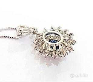 Collana con pendente fantasia con Zaffiro ovale ct 0,73 e doppio giro di Diamanti ct 0,28 lavorato in Oro Bianco 18kt-750- Grammi 2,33