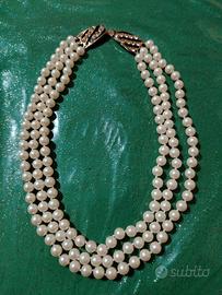 Bella collana di perle 3 fili con chiusura a scatto misure come da foto