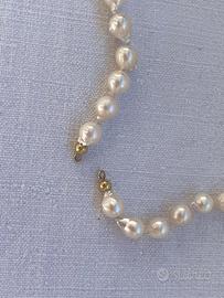 collana perle barocche 7 mm, n.59 perle infilate con i nodi, finali in oro 18 kt peso collana gr. 115, lunghezza cm.56 nuova, proveniente da rimanenze di negozio vendesi euro 70