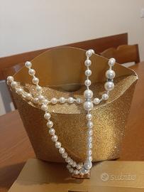 Bellissima collana di bigiotteria con perle bianche e dettagli argentati. - Elegante e raffinata. - Perfetta per occasioni speciali.