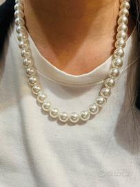 Collana con perle bianche effetto perla (non vere perle).