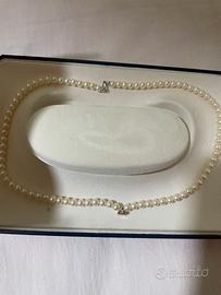 Colier di perle coltivate in acqua dolce,oro bianco 18k e diamante naturale.Mai indossato,lunghezza totale 41 cm.Ancora in confezione originale e garanzia.