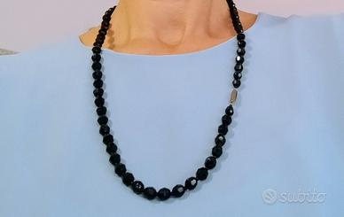 Set bijoux composto da: + 1 collana di cristalli neri + 1 paio di orecchini con perla nera per lobi forati La collana di cristalli neri è finissima anche su abiti nero, tono su tono, pure d'inverno. Gli orecchini sono anallergici (nickel free) mai usati - in confezione originale. Altri modelli e combinazioni disponibili sul mio profilo