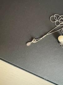 Nuova, collana in argento 925 con perla con acqua di mare cristallizzata. Ho aggiunto foto del sito per vedere nel dettaglio la perla. Il colore è un avorio molto chiaro. Lunghezza collana 50 cm, diametro perla 10 mm. Con confezione originale come da foto.