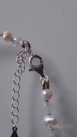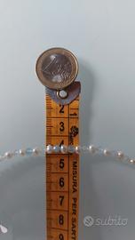 Collana girocollo realizzata con perle sfaccettate di Acquamarina ( pietra naturale di mm 4),perle d'acqua dolce ( perle ** naturali di circa 3/4 mm ,vedi ultime foto per dimensione) , gancino e catenina in Argento 925.
