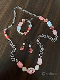 Parure completa di collana, bracciale e orecchini Catena alluminio, chiusure e monachelle orecchini in acciaio inox Perle di fiume, madreperla e cristalli Collana: cm 100 cm (quindi indossabile lunga o doppiata come in foto) Bracciale con cavetto: cm 19,5 + 4 di allungatore Orecchini: cm 5,5 ca. Completamente fatta a mano, in parte annodata. Vendo a: 11 euro per la collana 7 euro per il bracciale 5 euro per gli orecchini PER LA PARURE COMPLETA: EURO 18 (invece che 23) Confezionata con sacchettino tessuto, velluto o organza. #idearegalo