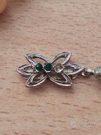 Collana di perle naturali con gancio in argento 925 e gemme verdi.