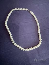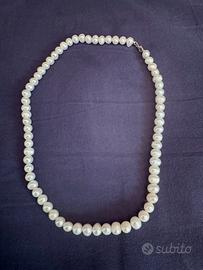 Collana di perle naturali di acqua dolce, mayumi, marchio noto per l’ottima qualità delle perle, collana in perle + chiusura in oro 18kt 0,35g, completo di scatola, garanzia, panno per pulizia