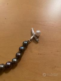 Bellissima collana di perle nere e chiusura fatta in oro bianco e perla bianca