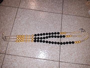Elegante collana multistrato con perle di diverse dimensioni e colori.