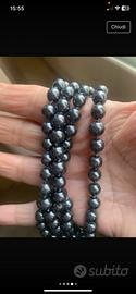Bellissima collana di perle artificiali colore grigio scuro lunga cm 65 in ottime condizioni