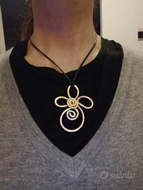 Collana con spirale in alluminio battuto, laccetto 50 cm circa, fatta a mano, " gioielli stile etrusco"