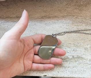 Piastrina in acciaio mai incisa. Usata ma come nuova. Per ulteriori informazioni contattatemi. Spedizione immediata ❤️