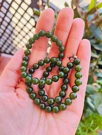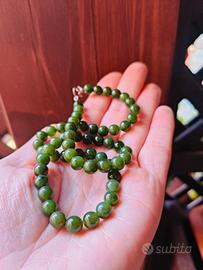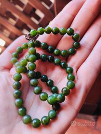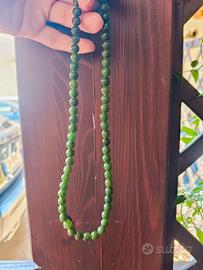 Bellissima collana girocollo Vintage con pietre di Giada verde. Lunghezza circa 42 cm.