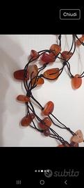 collana a 6 fili di pietre marroni ,caramello verde oliva ... lunga 20 cm nuova mai usata.