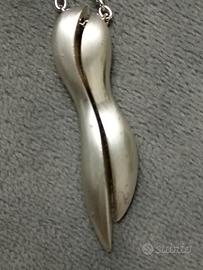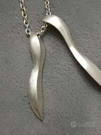 collana anni 90 con ciondolo in acciaio opaco.Due lunghezze con due ganci a seconda della lunghezza che si desidera.Il ciondolo ha il significato di due Anime stilizzate.