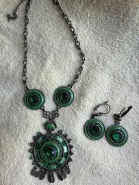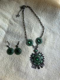 Vendo Collana con cristalli verdi e orecchini abbinati