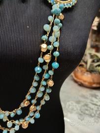 bellissima collana lunga color turchese più orecchini a gancio tutto su base Gold. ottima vestibilità.