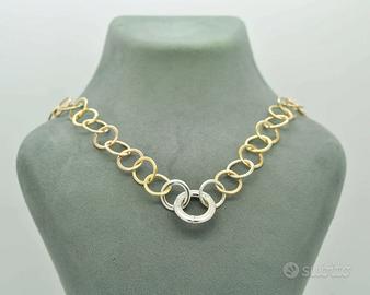 Prezzo di listino: 8000 Splendida collana Pomellato Lucciole realizzata in oro tre colori ct 750, un gioiello raffinato che unisce armoniosamente oro giallo, oro bianco e oro rosa. Al centro del design brilla un diamante da 0,03 carati, incastonato con cura per aggiungere un tocco luminoso e discreto. Con un peso totale di 35 grammi, questa creazione Pomellato esprime qualità, ricercatezza e uno stile inconfondibile, perfetta per chi desidera un gioiello prezioso ma allo stesso tempo versatile. cod 154A21 NOTA BENE: Per finalizzare l’acquisto dei nostri gioielli rigenerati è obbligatorio inviare copia del documento di identità. La documentazione deve essere trasmessa tramite WhatsApp o chat entro 3 giorni dall’acquisto. In mancanza, l’ordine verrà annullato. NELL'OFFERTA SONO INCLUSI -Certificato di autenticità e descrizione delle caratteristiche del gioiello. -Elegante astuccio regalo, perfetto per valorizzare il gioiello in assenza della confezione originale -Messa a misura in omaggio per gli anelli - SPEDIZIONE - La spedizione avverrà tramite corriere espresso ed è comprensiva di assicurazione. Qualsiasi richiesta di modifica, incisione o personalizzazione rende l’oggetto non idoneo alla restituzione.